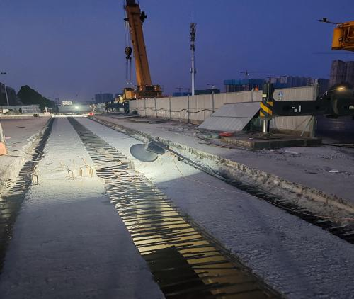 | 9月14日凌晨5:30,由城發(fā)投集團(tuán)所屬市政集團(tuán)市政工程公司承建的勝利大街跨裕華路舊橋拼寬工程T型梁全部吊裝完成,工程將轉(zhuǎn)入橋面施工和附屬結(jié)構(gòu)施工階段。 勝利大街跨裕華路舊橋拼寬工程,拼橋段頂升長(zhǎng)度為83米,其中31.939米T型梁1跨,25.42米T型梁2跨,橋面寬度33.5米,總體頂升重量達(dá)2074噸。 該拼寬工程將兩座獨(dú)立的并行橋梁結(jié)構(gòu)連通并加強(qiáng),利用兩幅橋間2.25米寬空隙進(jìn)行拼寬處理,實(shí)現(xiàn)了增加一個(gè)機(jī)動(dòng)車(chē)道的交通功能。市政集團(tuán)科學(xué)組織、精心調(diào)度,多次召開(kāi)專(zhuān)題會(huì)議并進(jìn)行施工技術(shù)和安全交底,在橋下狹小的空間內(nèi),將分幅蓋梁連通成整幅蓋梁,形成支撐上部結(jié)構(gòu)荷載的大橫梁,在大橫梁上架設(shè)T型梁,攻克了本次工程的最大難點(diǎn)。 下一步,市政集團(tuán)將進(jìn)一步加強(qiáng)施工組織,細(xì)化施工工藝,做到舊橋改造提升內(nèi)實(shí)外美,確保按照既定時(shí)間節(jié)點(diǎn)高質(zhì)高效完成建設(shè)任務(wù)!